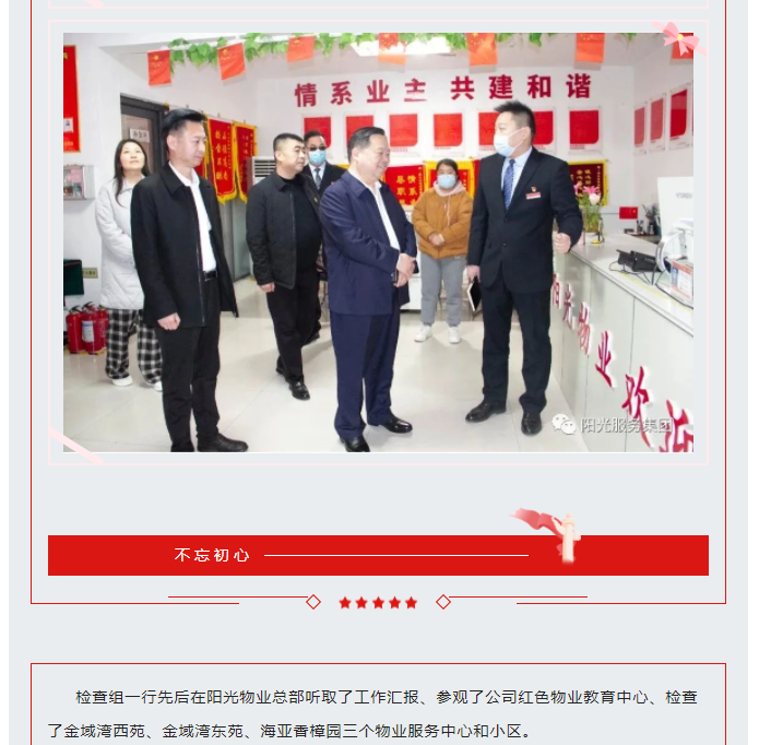 陽光資訊│市住建局黨組成員、副局長(zhǎng)、物業(yè)行業(yè)黨委專職副書記王紀(jì)峰同志及行業(yè)專家蒞臨陽光物業(yè)檢查指導(dǎo)