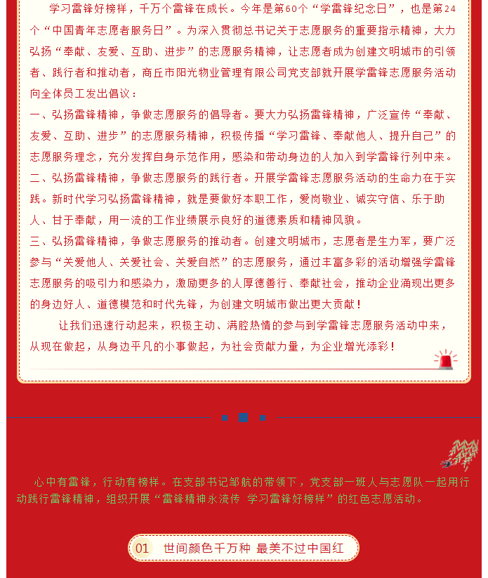 愛的傳承 | 陽光物業(yè)黨支部組織開展“雷鋒精神永流傳 學(xué)習(xí)雷鋒好榜樣”特別活動