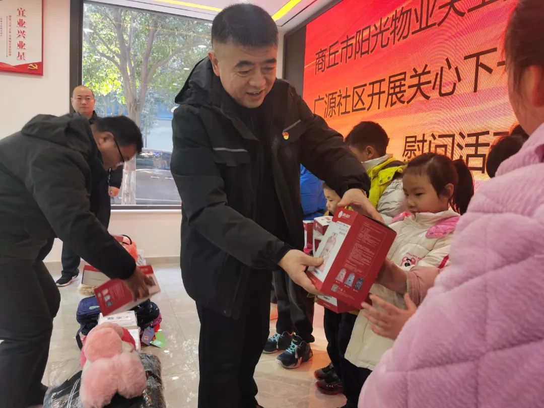 12月16日上午,陽(yáng)光物業(yè)關(guān)心下一代工作委員會(huì)(陽(yáng)光物業(yè)關(guān)工委)到白云街道廣源社區(qū)開(kāi)展關(guān)心下一代“送溫暖”慰問(wèn)活動(dòng)。陽(yáng)光物業(yè)黨支部書(shū)記、董事長(zhǎng)、陽(yáng)光物業(yè)關(guān)工委組長(zhǎng)鄒航,廣源社區(qū)黨支部書(shū)記、主任李政,陽(yáng)光物業(yè)總經(jīng)理、陽(yáng)光物業(yè)關(guān)工委副組長(zhǎng)龐道光,陽(yáng)光物業(yè)工會(huì)主席、陽(yáng)光物業(yè)關(guān)工委辦公室主任白福慶等公司領(lǐng)導(dǎo)和社區(qū)工作人員共同參加了活動(dòng),并為青少年代表發(fā)放了書(shū)包、文具、書(shū)本等學(xué)習(xí)用品和水杯、耳罩、棉衣等生活品。