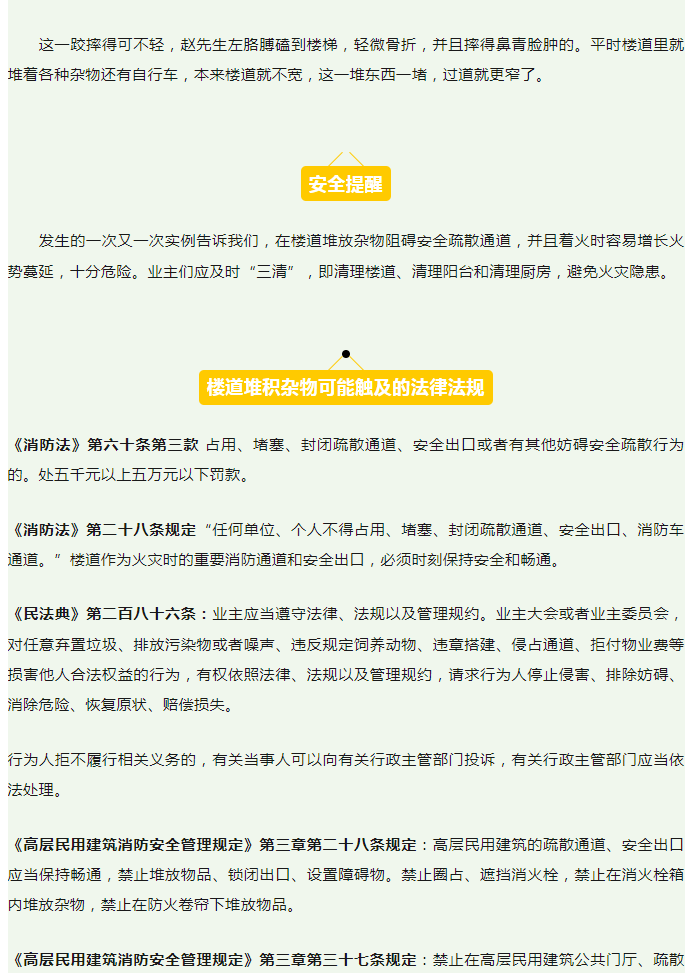 法律宣傳 | 關于小區(qū)樓道堆放雜物的安全隱患及法律責任