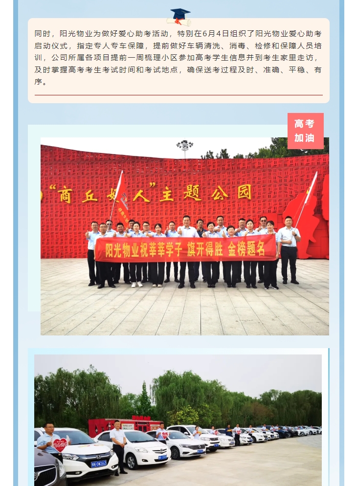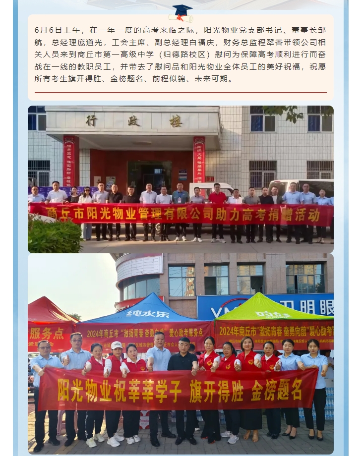 愛心助考|陽光物業(yè)慰問商丘市第一高級(jí)中學(xué)一線教職員工助力高考