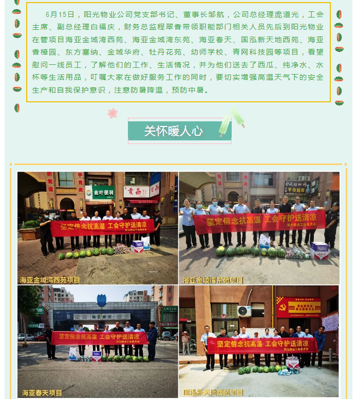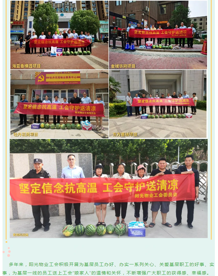 工會活動|陽光物業(yè)開展“堅定信念抗高溫、工會守護送清涼”活動