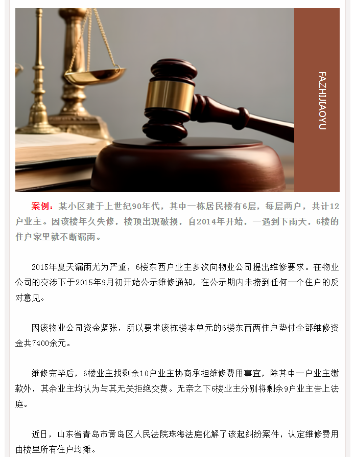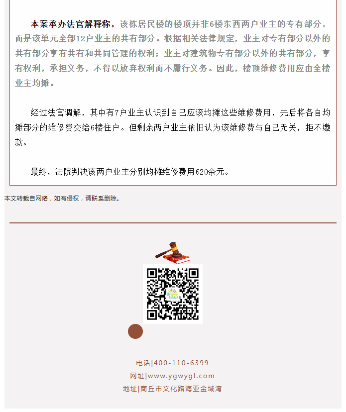 樓頂漏雨需維修,為什么全樓業(yè)主攤費用?