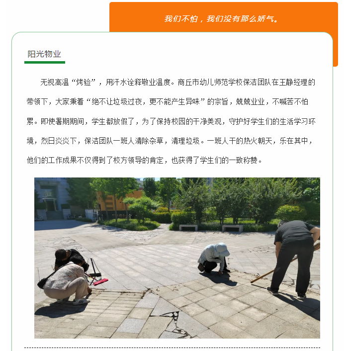 陽光物業(yè)成立于2003年5月,專注物業(yè)服務(wù)行業(yè)20余載,陽光物業(yè)現(xiàn)為河南省物業(yè)管理協(xié)會副會長單位、商丘市物業(yè)管理協(xié)會副會長單位,公司注冊資金1020萬元,陽光物業(yè)連續(xù)多年被河南省及商丘市評為先進(jìn)企業(yè)、優(yōu)秀企業(yè)。