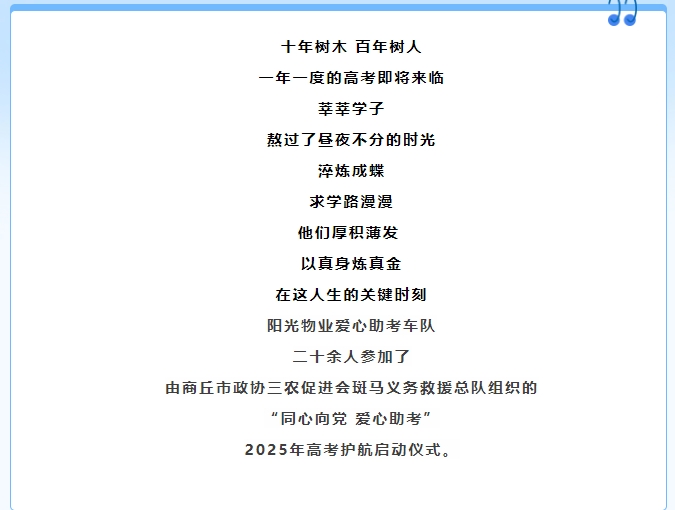 陽光物業(yè) | “同心向黨 愛心助考”啟動(dòng)儀式