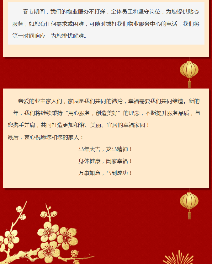 金馬迎春福滿庭,同心共筑幸福家|陽光物業(yè)致全體業(yè)主家人的一封信